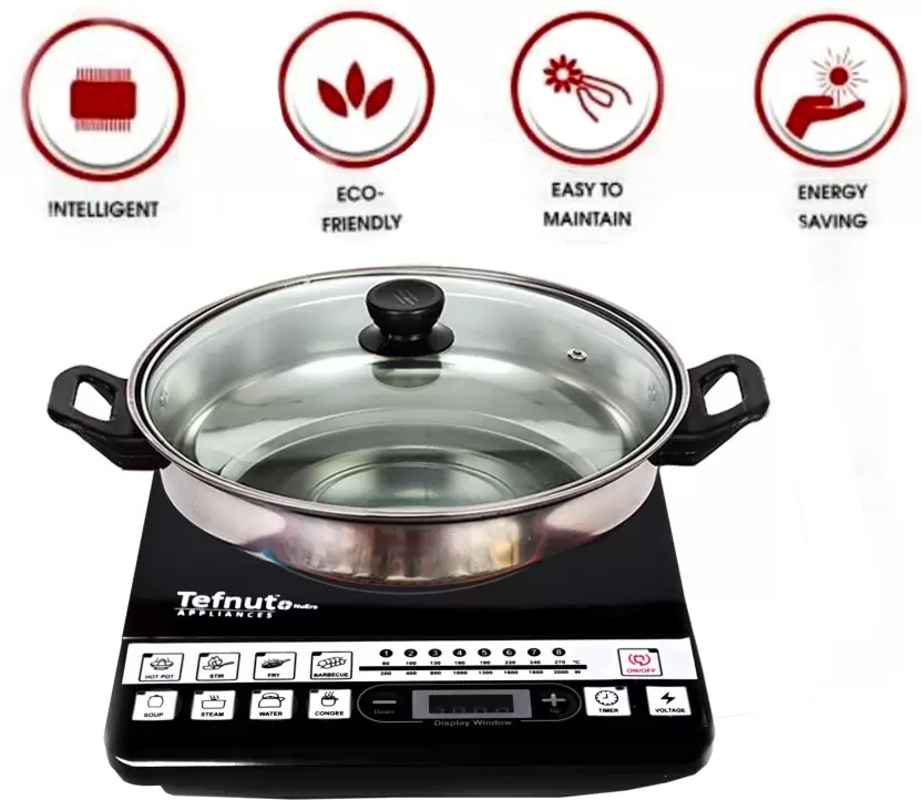 Tefnut Induction Cooktop Chula has a strong fire function of 2000 Watts with Push Button Control It can cook food boil and heat within a few minutes because heating coil is 100 Copper long lasting Timer Function It has a unique feature of the timer function You can easily set the time for making the food as your choice and dish will be ready within the set timer function 4 Digit LED Display Tefnut Induction Cooktop has a 4 digit Led display you can easily read and check the temperature
